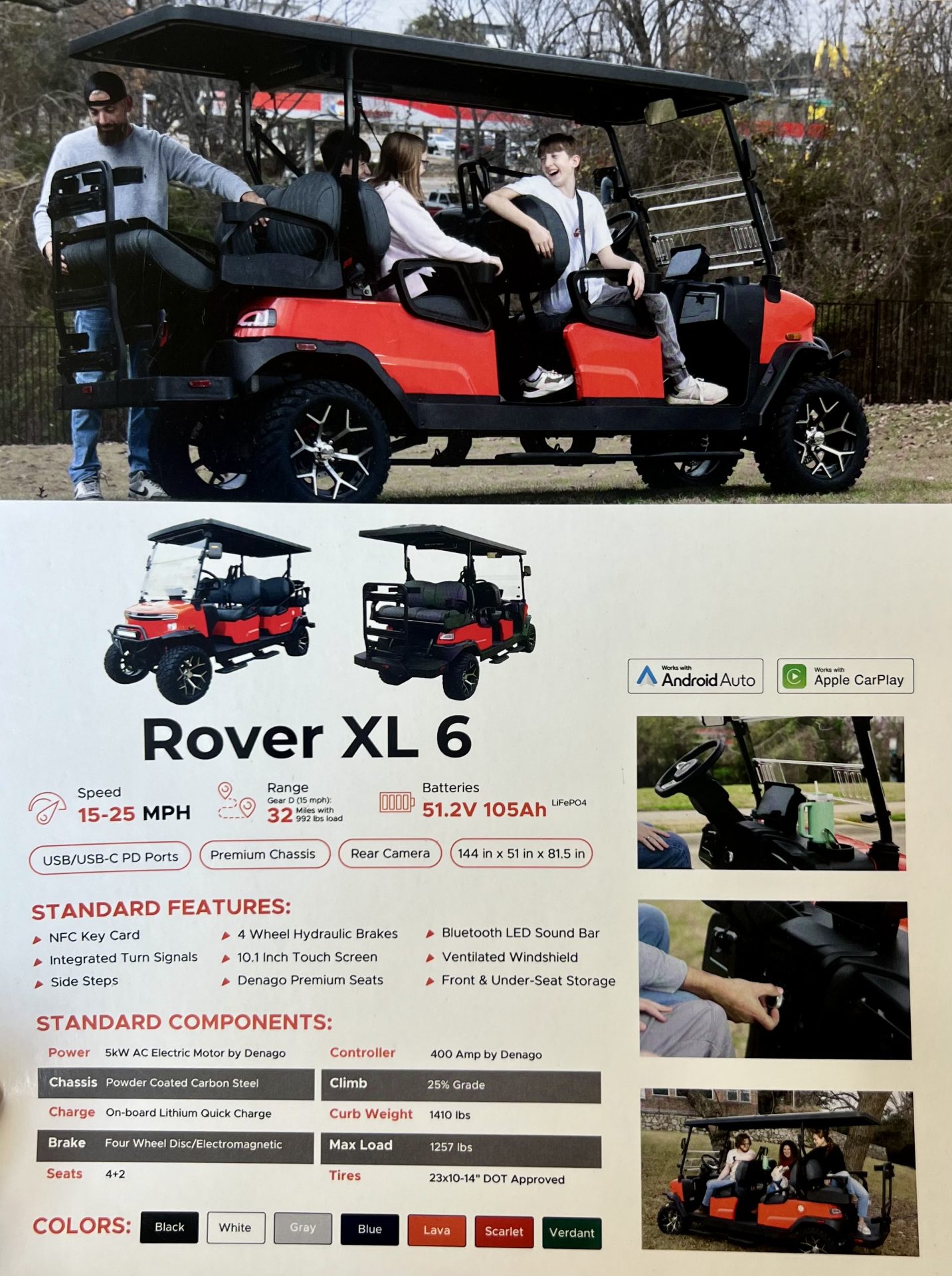 Looking for the ultimate golf cart upgrade? The Denago Rover XL has all the power, comfort, and tech you’ve been waiting for – now with 0% financing for 36 months, NO money down!